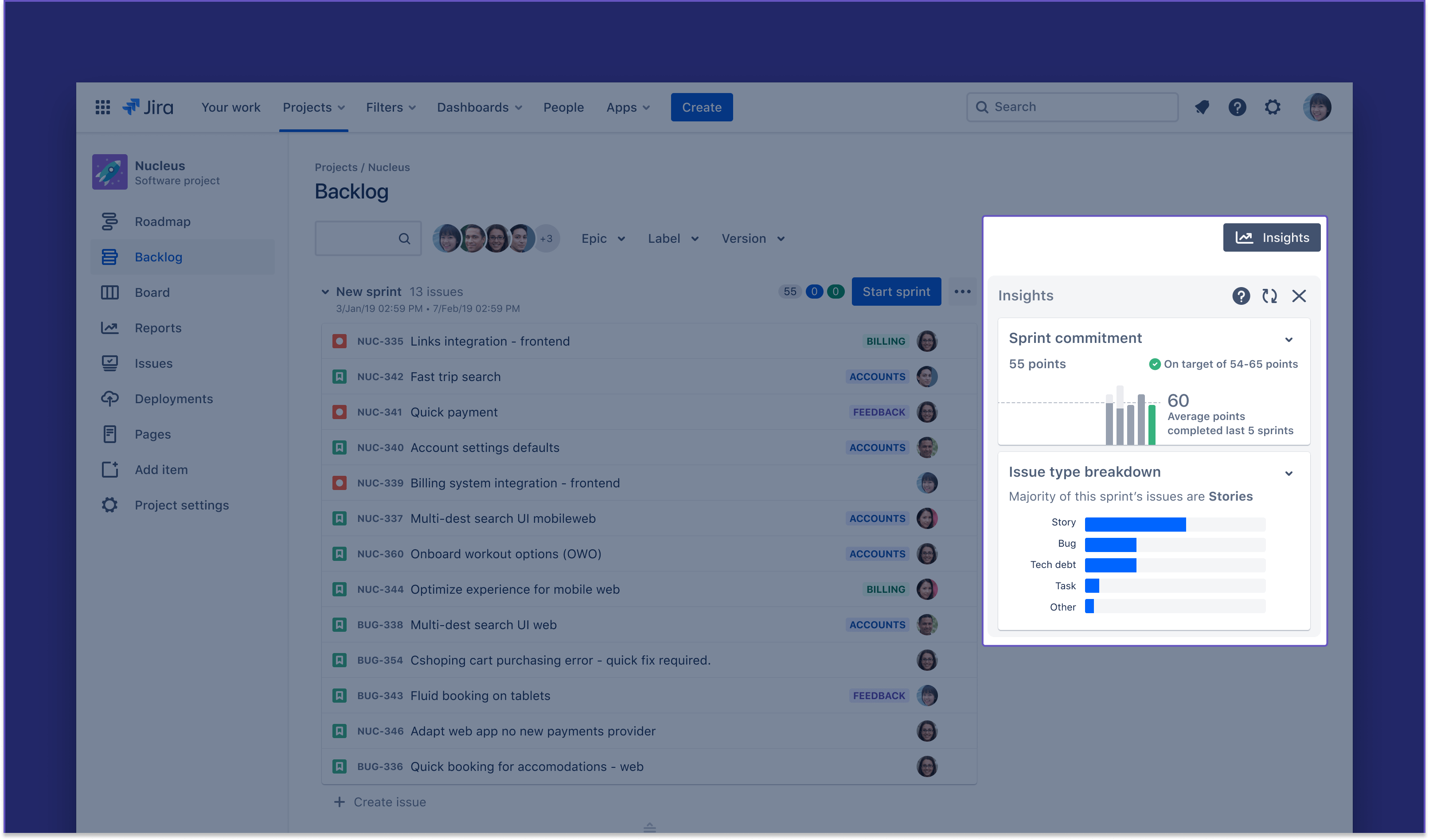 When your sprint backlog is a growing mix of feature work, bug fixes, and technical debt, it becomes tricky to see where your team is dedicating their time in the sprint. It’s easy for bugs or tech debts to sneak into your sprint, especially if the development team is passionate about quality. But if a team isn’t careful, it can end up after the sprint wondering why it didn’t ship enough customer values as planned.