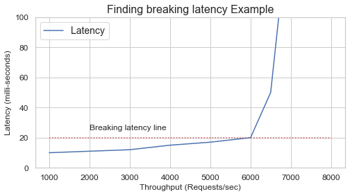 After a long discussion we settled on the “Throughput at breaking latency” metric. Breaking latency is the point when the machine can no longer serve more throughput and maintain acceptable response times to traffic being served and incrementally more throughput induces an exponential rise in latency.