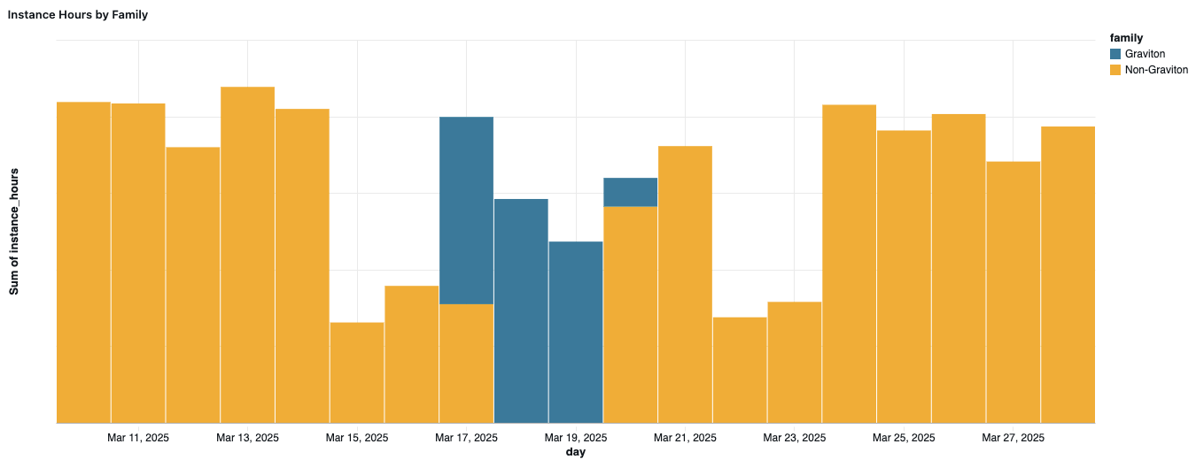 In testing we quickly found that EC2 instances not serving user-facing traffic can use older Graviton generations without impact. This is good news because older Gravitons are less in demand, reducing risk of insufficient capacity and freeing more Graviton 4 instances for critical part of the architecture. They are also cheaper, increasing cost savings from this migration.