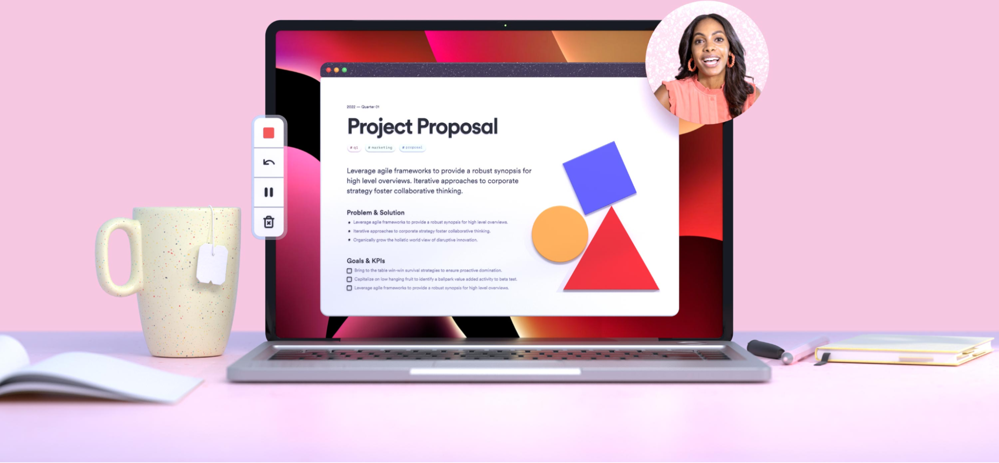 Loom’s screen recorder captures your voice, face, and screen to create asynchronous video messaging. These video recordings are a great way to support clear communication while replacing lengthy and confusing written explanations. Teams can easily swap unproductive meetings and instead record a Loom update, introduce a new employee to team processes, and share helpful feedback on a design project.