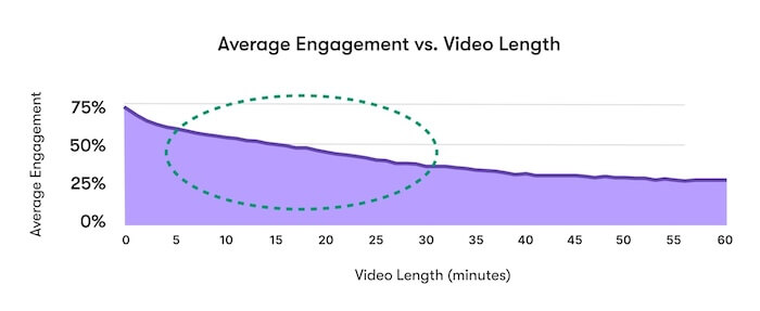 - Keep it short and focused. Lengthy videos—typically those over five minutes—see a steady decline in engagement rates. When you scroll through your inbox and click on a video email, you’d most likely prefer to watch a quick explanation than a 10-minute version.