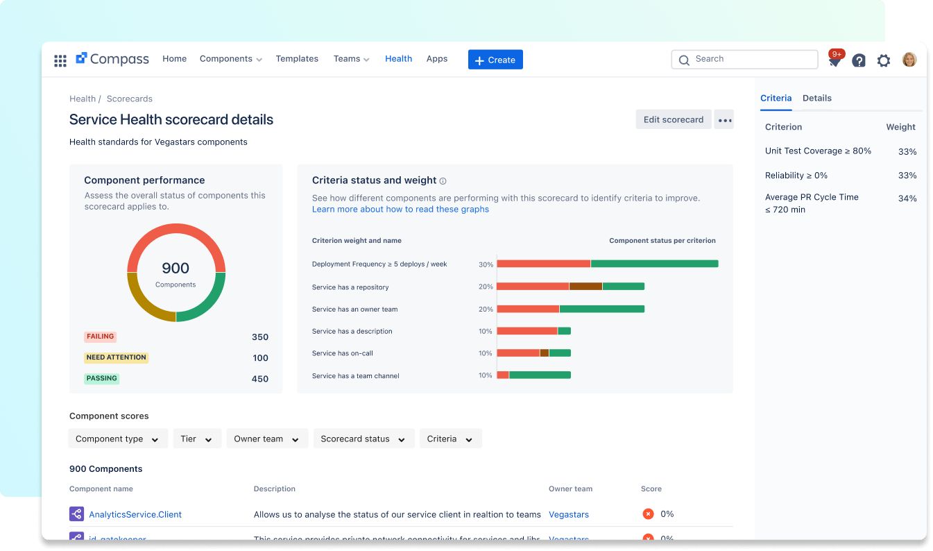 Verfolge die Leistungskennzahlen der Software, wende Sicherheits- und Gesundheits-Scorecards an und biete Teams ein besseres Entwicklererlebnis.