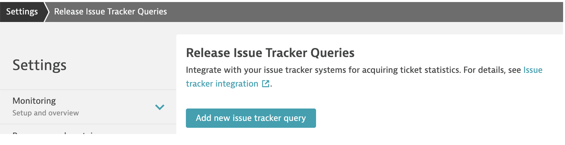 3. On the Release Issue Tracker Queries settings page, click the Add new issue tracker query button.