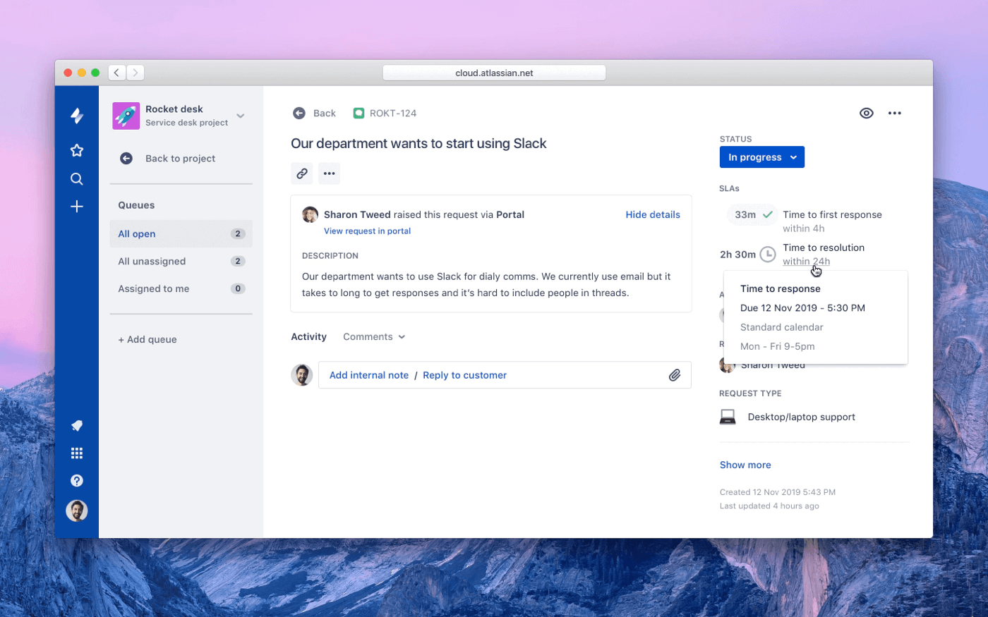 Clasifica, rastrea y responde sin problemas a las solicitudes para cumplir los SLA y mantener informadas a las principales partes interesadas.