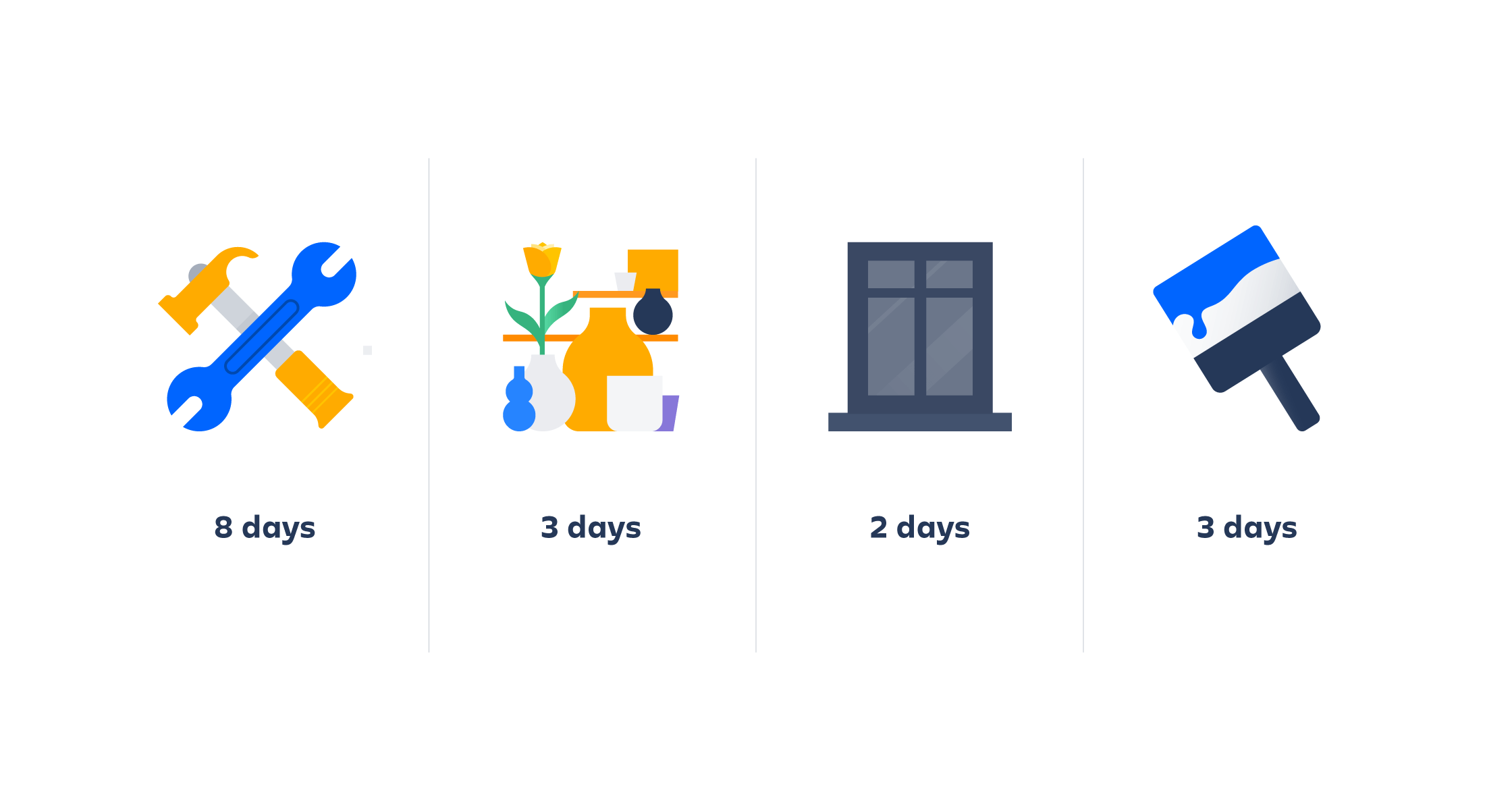 Par exemple, vous devez démonter les anciennes fenêtres, en acheter des nouvelles, les installer et améliorer l'expérience avec des protections. Ces blocs de travail rempliraient votre backlog.