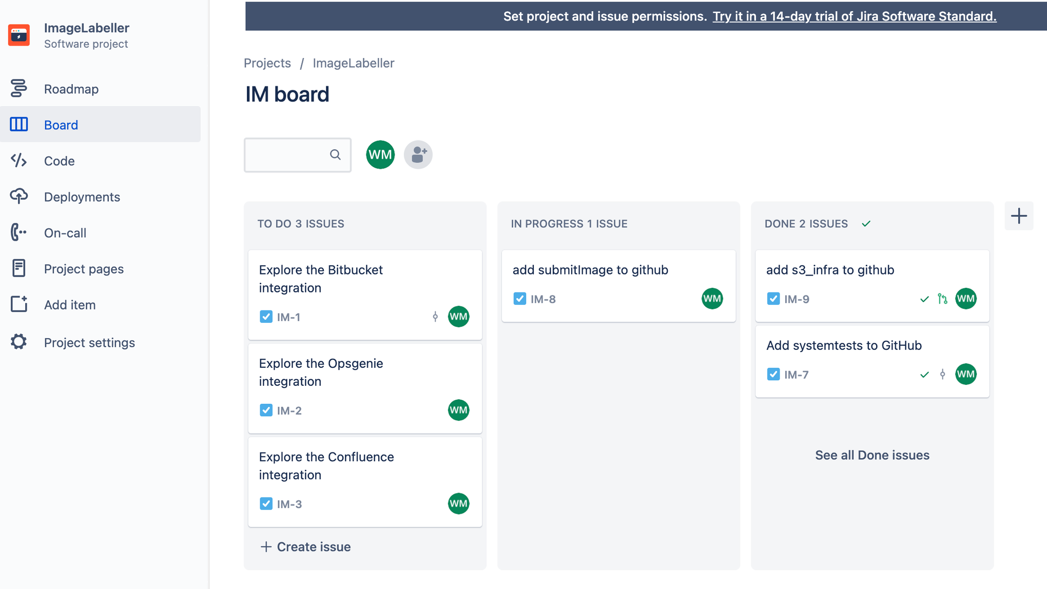 Перейдите в Jira и создайте задачу для добавления репозитория InvokeLabeller AWS Lambda в GitHub. Обратите внимание на идентификатор задачи Jira (в данном примере — IM-11).