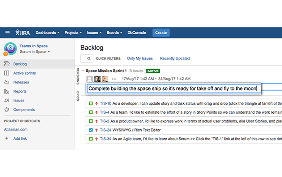 Теперь для команд, работающих в Kanban, есть специальное окно бэклога, чтобы они могли планировать работу и определять приоритеты в фазе планирования отдельно от фазы разработки. Предусмотрена также панель с фильтрами версий и эпиков, чтобы задачи были упорядочены и их проще было искать.