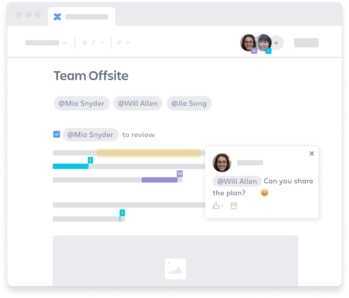 Confluence keeps you caught up across the entire org with project resources and company content that's centralized, open by default, and easily findable.