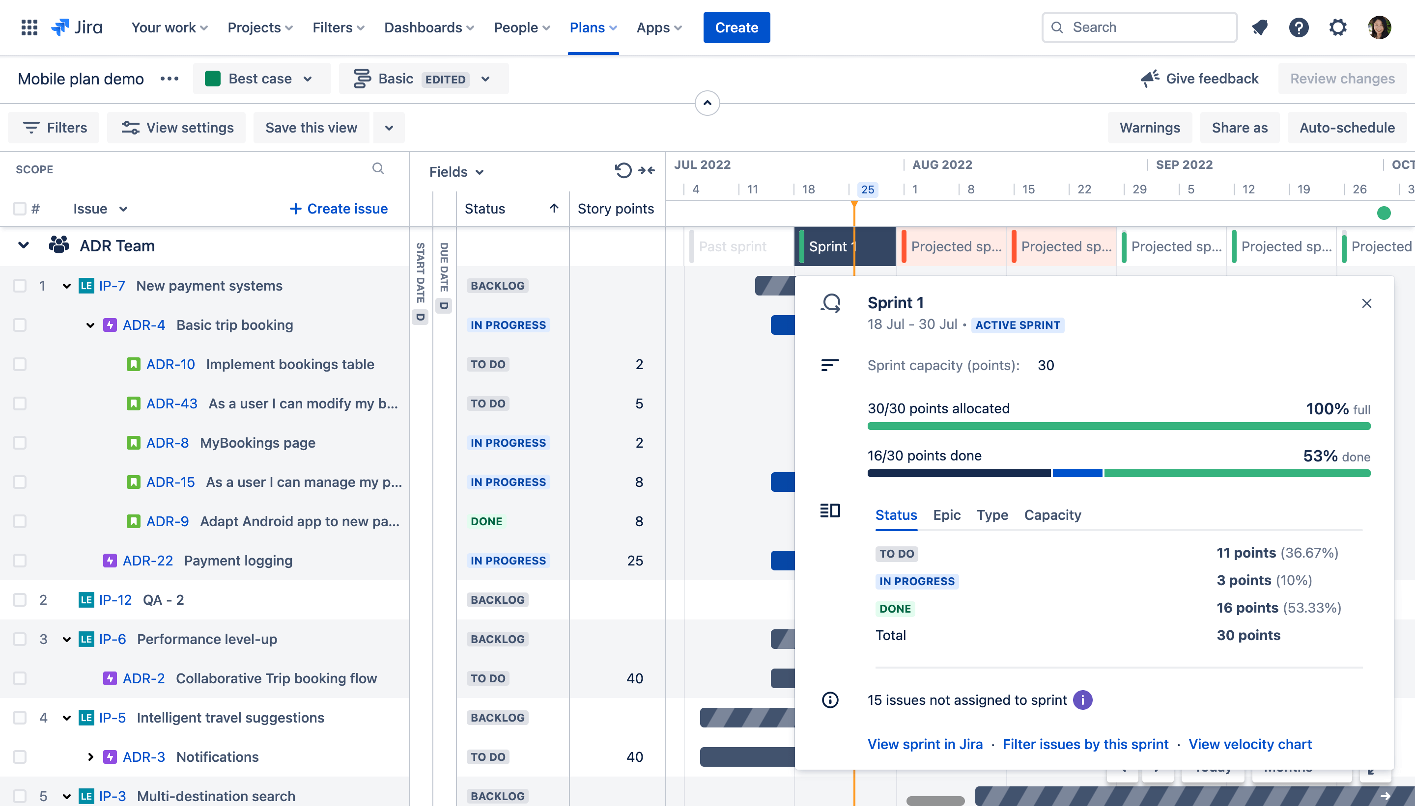 Advanced planning guide in Jira