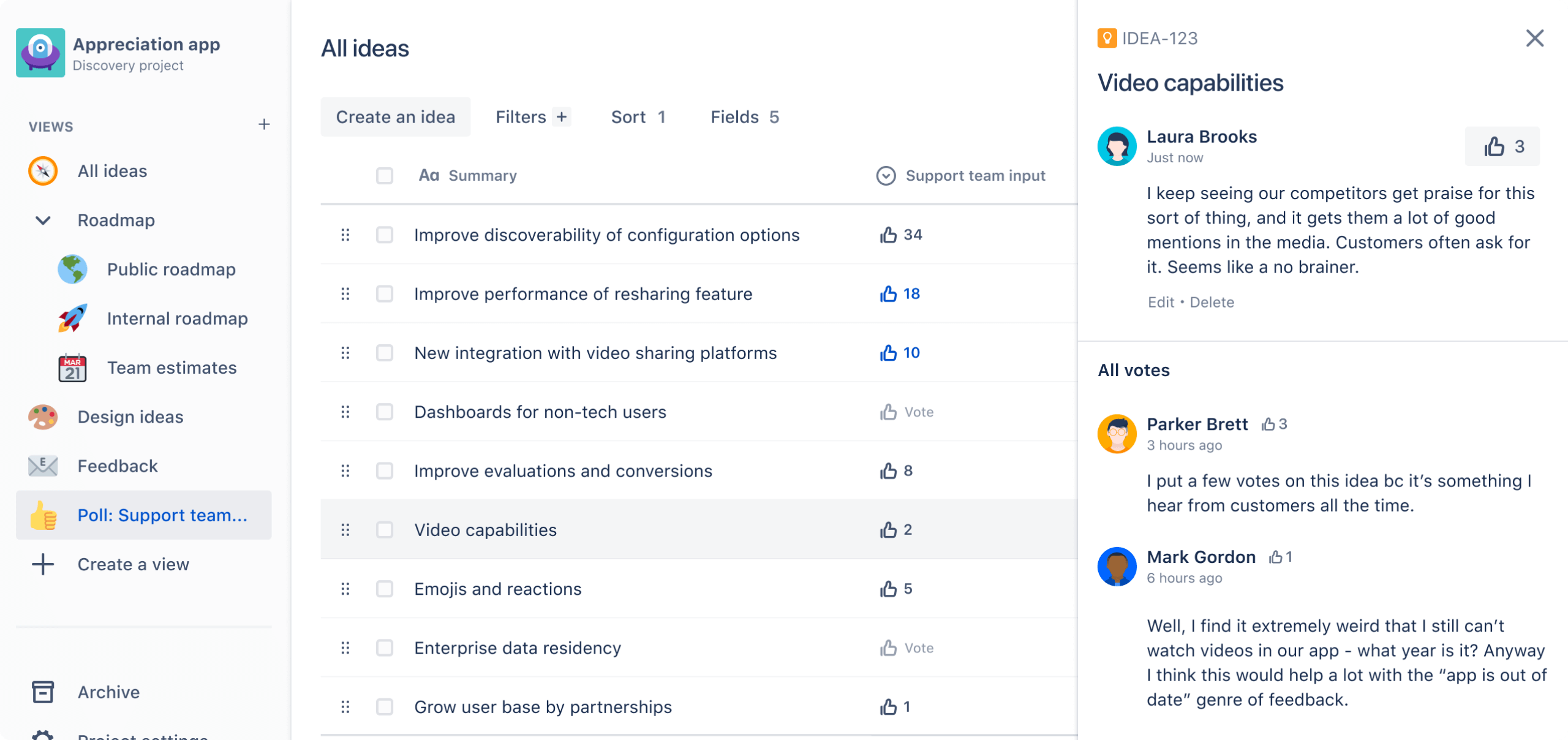 Reduce context switching, add visibility, and move faster by seamlessly connecting your ideas to the delivery work happening in Jira.