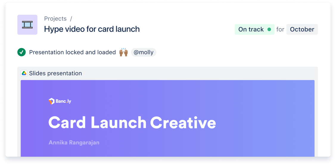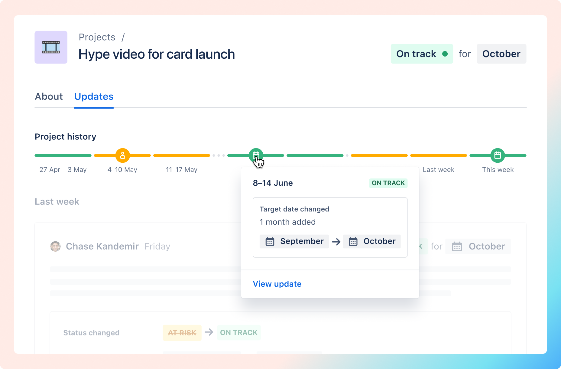 Projects keeps everyone in sync with a regular reporting rhythm, delivering progress updates right where your teams already work.